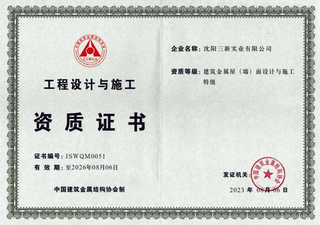 建筑幕墻工程設(shè)計(jì)專項(xiàng)甲級(jí)、輕型鋼結(jié)構(gòu)工程設(shè)計(jì)專項(xiàng)甲級(jí)