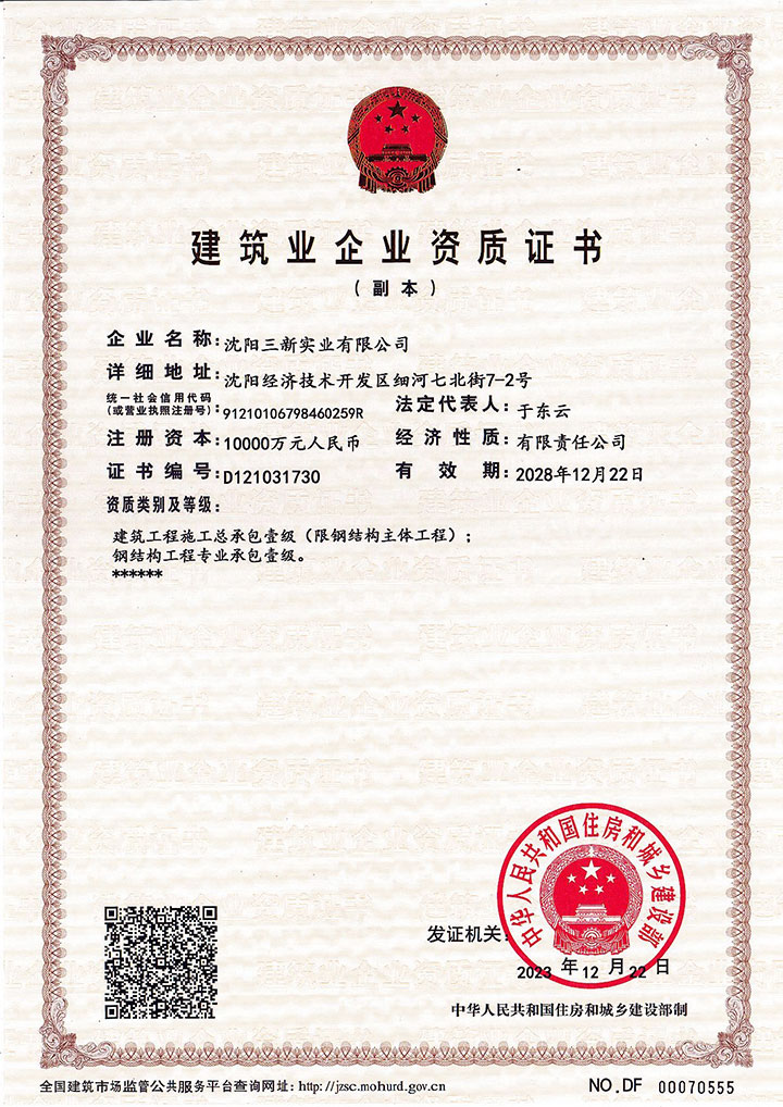 建筑工程施工總承包壹級(jí)、鋼結(jié)構(gòu)工程專業(yè)承包壹級(jí)