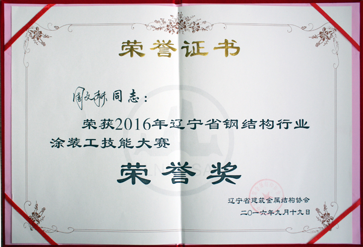 2016年9月19日,由遼寧省建筑金屬結(jié)構(gòu)協(xié)會(huì)主辦的遼寧省鋼結(jié)構(gòu)行業(yè)涂裝工技能大賽圓滿落幕。來自全省10家企業(yè)的20名選手參加了最后的決賽。我公司鋼構(gòu)生產(chǎn)部技工肇旭升獲得第二名的好成績,周文赫獲得榮譽(yù)獎(jiǎng)。