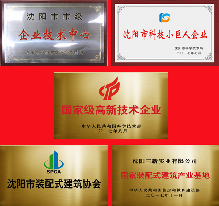 春華秋實(shí),2017年是三新集團(tuán)豐收的一年,借力國(guó)家創(chuàng)新戰(zhàn)略的成功實(shí)施,集團(tuán)業(yè)務(wù)長(zhǎng)足發(fā)展,實(shí)力與日俱增。集團(tuán)相繼獲得國(guó)家科技部授予的“高新技術(shù)企業(yè)”、沈陽市高新技術(shù)和科技小巨人“雙培育”企業(yè)、“國(guó)家裝配式建筑產(chǎn)業(yè)基地”和“全國(guó)科技低碳鋼結(jié)構(gòu)產(chǎn)業(yè)示范基地”、沈陽市“重合同守信譽(yù)”單位。三新集團(tuán)的技術(shù)研發(fā)中心被評(píng)為市級(jí)企業(yè)技術(shù)中心。三新集團(tuán)產(chǎn)品被列入《遼寧省重點(diǎn)推廣應(yīng)用工業(yè)產(chǎn)品目錄(2017年版)》、沈陽市重點(diǎn)工業(yè)優(yōu)質(zhì)產(chǎn)品名錄。