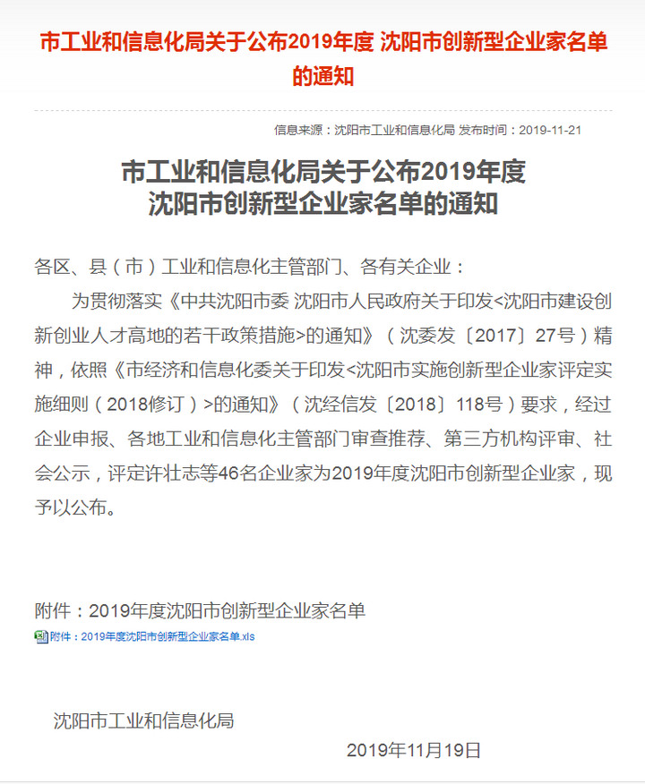 熱烈祝賀洪長(zhǎng)禧總經(jīng)理榮獲“2019年度沈陽(yáng)市創(chuàng)新型企業(yè)家”榮譽(yù)稱號(hào)