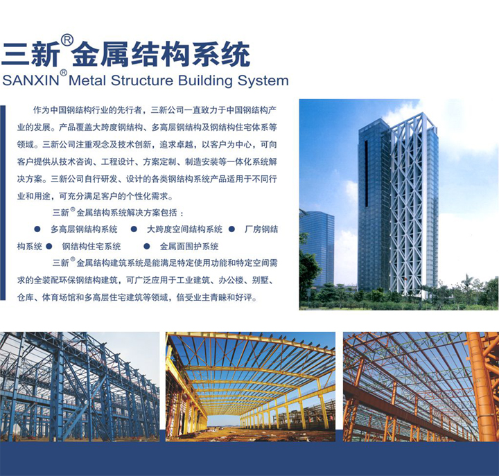 三新集團(tuán)是國內(nèi)知名的金屬結(jié)構(gòu)建筑系統(tǒng)、建筑幕墻系統(tǒng)、開放式金屬幕墻系統(tǒng)、索膜結(jié)構(gòu)系統(tǒng)設(shè)計(jì)、制作、施工及咨詢服務(wù)...