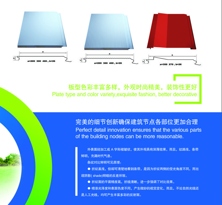 板縫通過專用板縫附件連接,造型美觀,而非直接采用搭接方式連接;