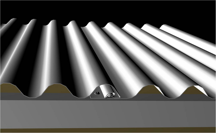 SX-310及SX-780 波紋板通過鍍鋅矩形管龍骨及專用連接角件固定于墻梁外側(cè),連接角件與龍骨之間采用自攻釘固定。