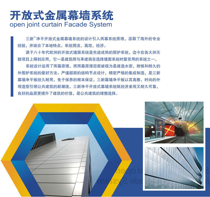 • 三新工業(yè)金屬幕墻系統(tǒng)----是公司多年來設(shè)計(jì)、施工實(shí)踐的結(jié)晶,工藝成熟、外觀時(shí)尚...